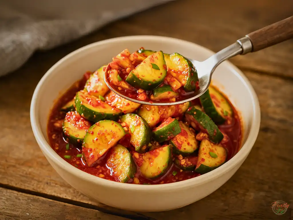 What sets cucumber kimchi apart is its ability to fit into so many lifestyles. It’s low in calories, light on carbs, and completely oil-free, making it perfect for anyone watching their weight, managing blood sugar, or simply looking for a clean, refreshing side. It proves that healthy eating doesn’t need to be bland or boring—every forkful is vibrant, crunchy, and alive with flavor.